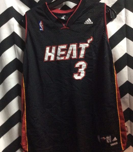 Adidas basketball jersey, Miami Heat, Wade #3, screen printed lettering/numbers, NBA, black/red/white, size M
