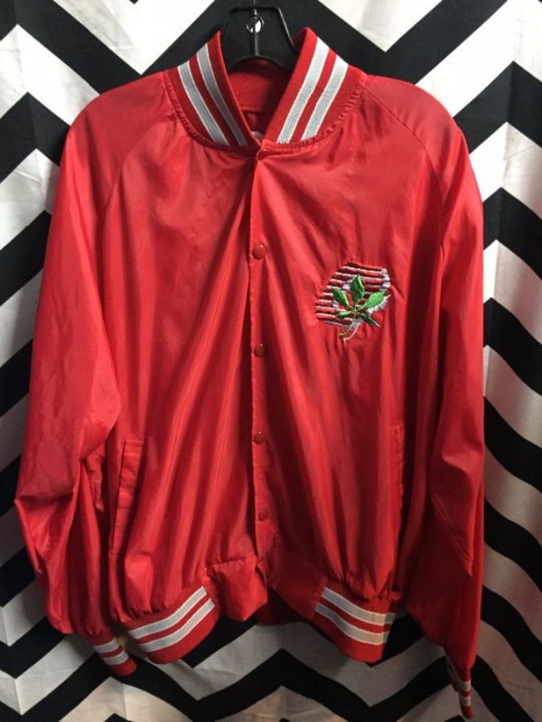 Sports jacket, satin, button-up, thin, Ohio Buckeyes, embroidered chest logo, NCAA, red/white, size L