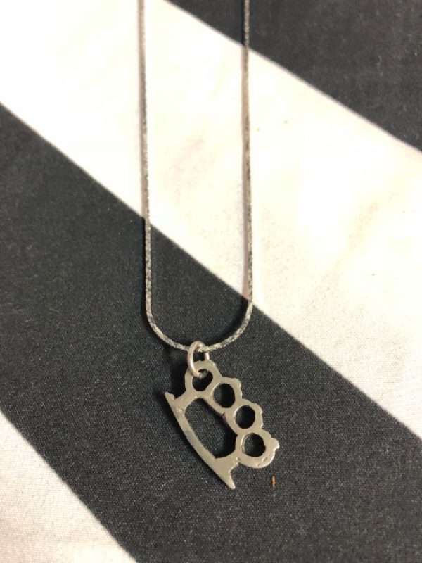 NECKLACE SILVER BRASS KNUCKLES PENDANT & CHAIN