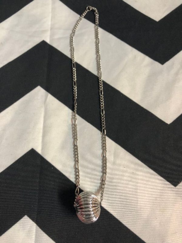 NECKLACE – RIBBED SILVER BALL PENDANT & CHAIN