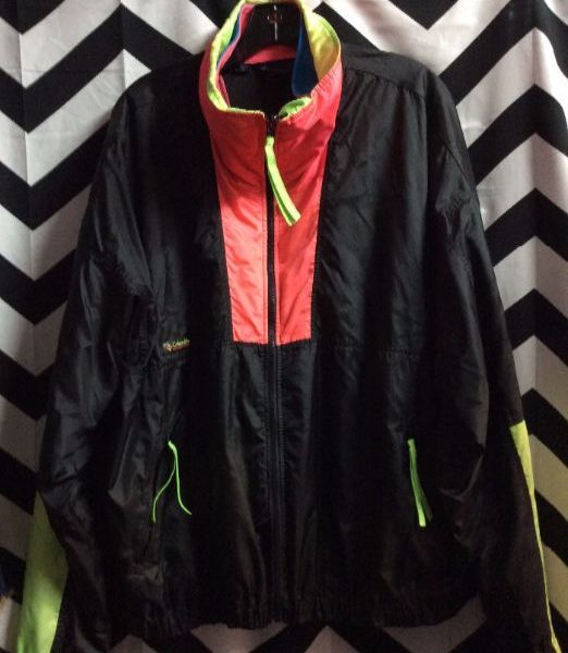 COLUMBIA WINDBREAKER JACKET – ZIP-UP – LINED W/NEON COLOR BLOCK DESIGN