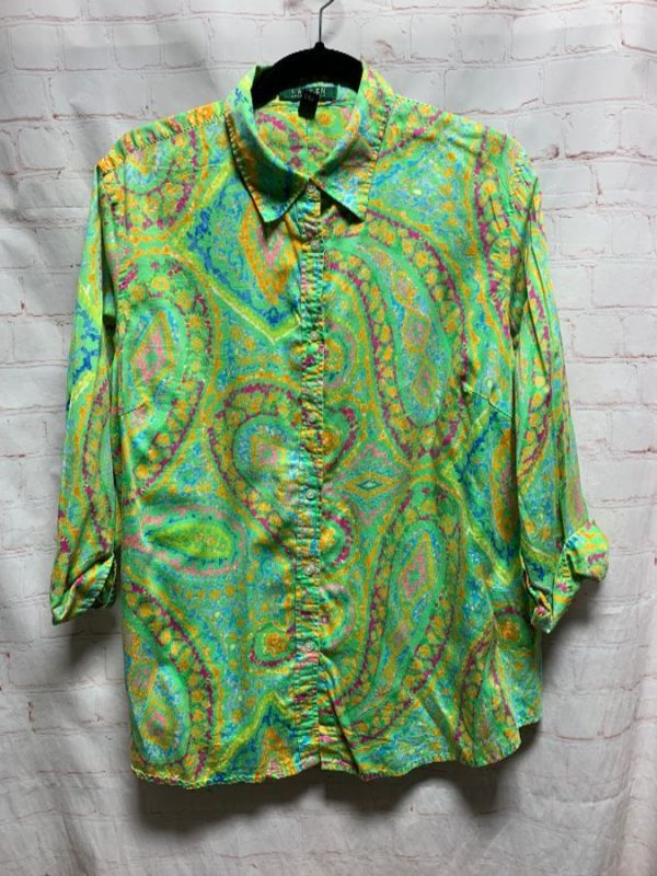 NEON COLORS W/ PAISLEY PRINT LAUREN SHIRT 3/4 BUTTON CUFFED SLEEVES