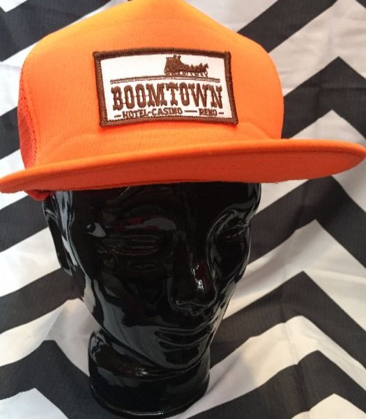 Boom Town Hotel/Casino baseball hat, patch, neon orange hat with white/brown patch