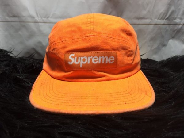 NEON ORANGE WASHED CANVAS SUPREME BOX LOGO 5 PANEL HAT NYLON ADJUSTABLE CLOSURE AS-IS