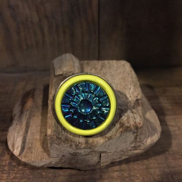 NEON YELLOW IRIDESCENT GLASS BUTTON COCKTAIL RING