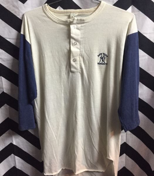 Retro New York Yankees baseball T-shirt, long sleeves, two toned, white/blue, size L