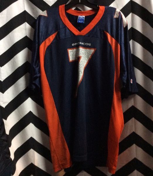 Champion sports jersey, Denver Broncos, Elway #7, screen printed lettering & numbers, NFL, navy/white.orange, size XL