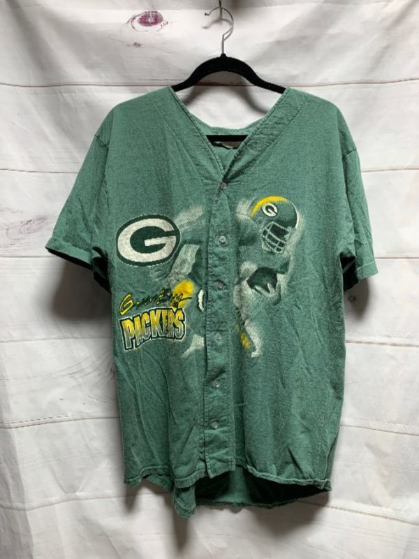 NFL GREENBAY PACKERS BUTTON UP BASEBALL STYLE JERSEY W GRAPHIC