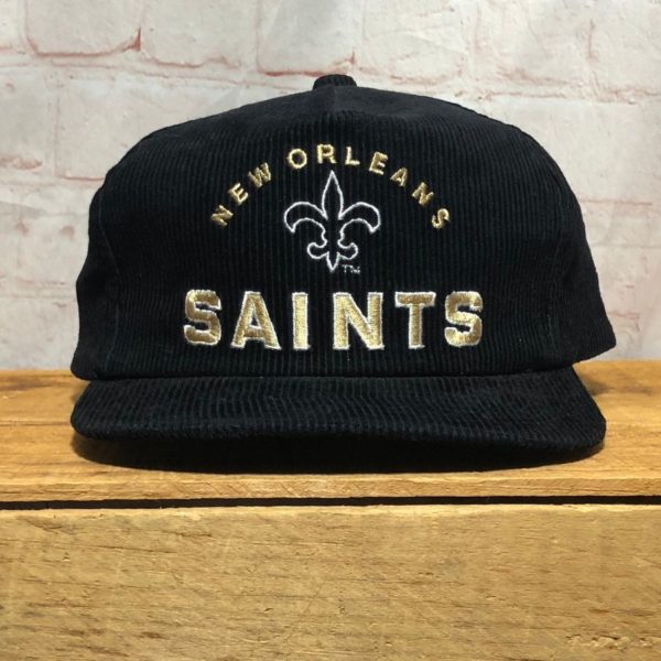 NFL cap, New Orleans Saints, corduroy, embroidered logo & lettering, snap-back, black/gold/white, size adjustable