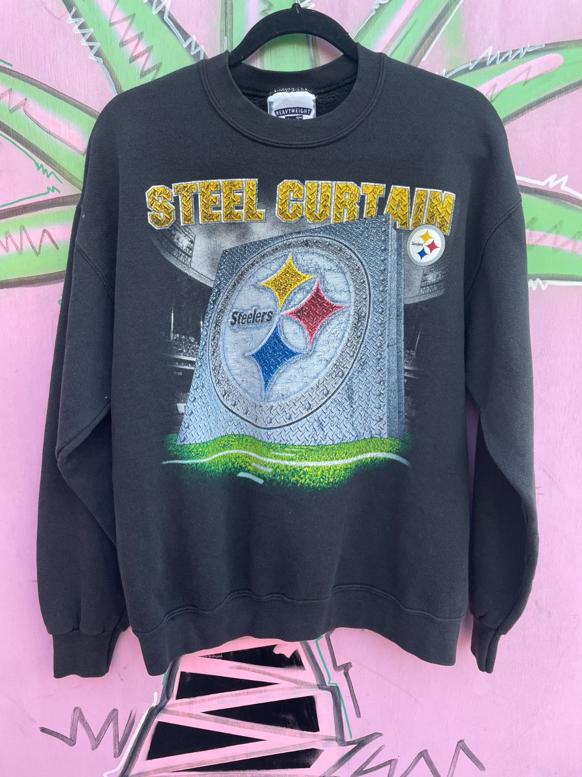 NFL PITTSBURGH STEELERS CREWNECK SWEATSHIRT COTTON STEEL CURTAIN GRAPHIC