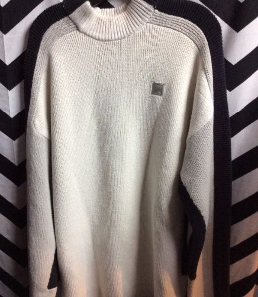 Nike Air pullover sweater, knit, triple striped design down arms, white/gray/black, size L