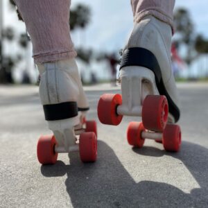 1980S WOMENS WHITE HOT PINK ROLLER DERBY 4 WHEEL QUAD SKATES URETHANE