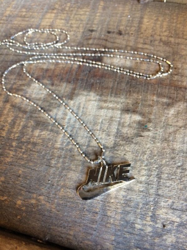 NIKE BOOTLEG PENDANT CHARM NECKLACE W/ THIN SILVER PLATED BALL-CHAIN