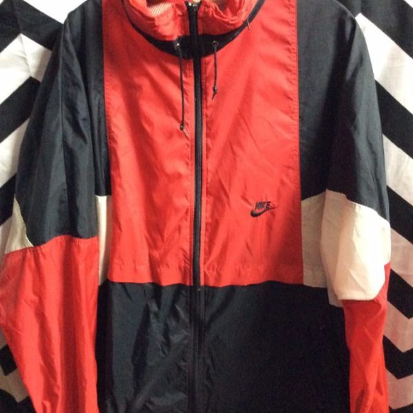 Nike windbreaker jacket, zip-up, Jordan colors, color block design, gray tag, red/white/black, size XL as is