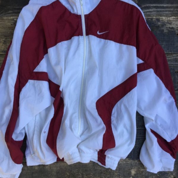 Nike windbreaker jacket, Air Jordan 6, zip-up, color-block design, logo left chest, white/maroon, size L