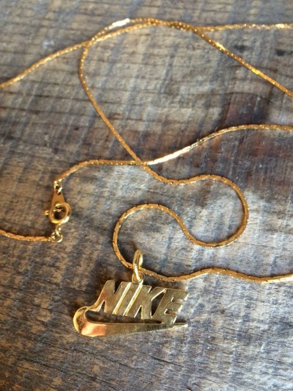 NIKE EMBLEM SOLID BRASS CHARM NECKLACE W/ GOLD PLATED MINI COBRA SNAKE CHAIN NECKLACE