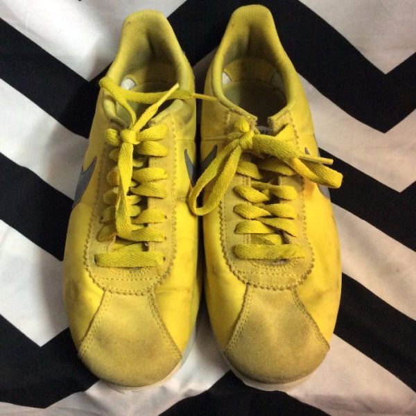 Nike running shoes, lace-up, mustard yellow/gray, size 8 as is