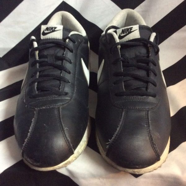 Nike tennis shoes, lace-up, swoosh logo on sides, black/white, size 11.5