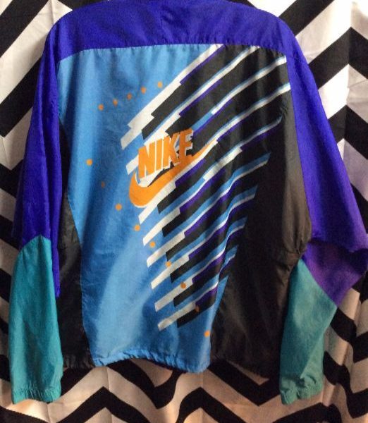 NIKE WINDBREAKER JACKET – ZIP-UP W/BACK PANEL GRAPHIC – COLOR BLOCK DESIGN