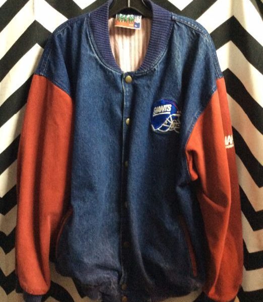 NY GIANTS DENIM BOMBER JACKET – TWO TONED – 2ND COLOR SLEEVES