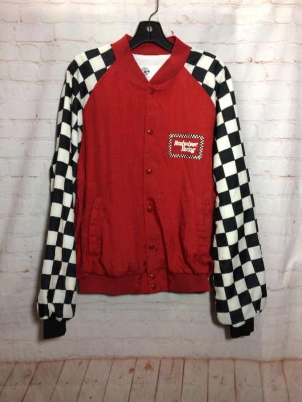 NYLON CHECKERED SLEEVES BUDWEISER RACING BOMBER JACKET