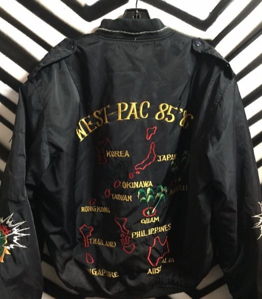 West Pac 85-86 nylon bomber jacket, embroidered dragon design & full back, black, size L