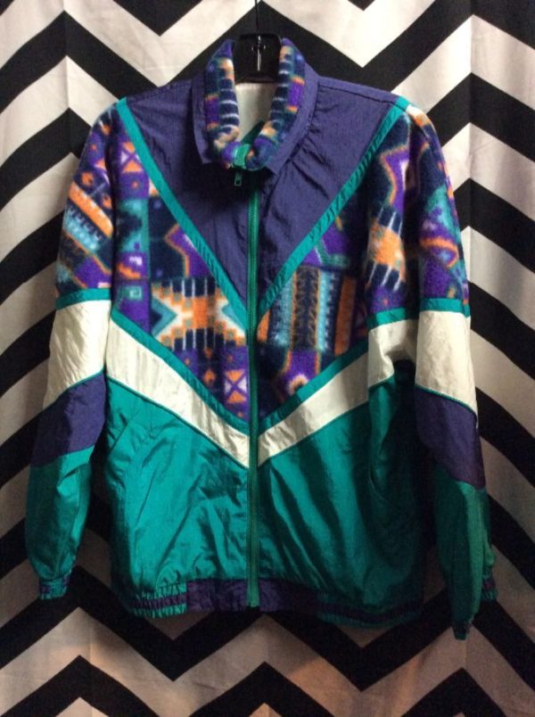 NYLON WINDBREAKER JACKET W/ FLEECE AZTEC PANELS