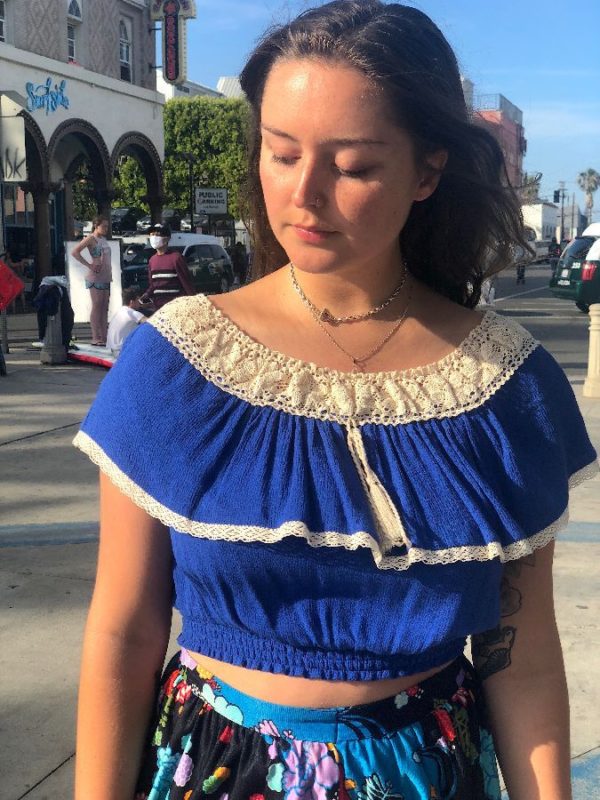 SHIRT – CLASSIC OFF SHOULDER SHELL TOP – RAYON – ELASTIC WAIST – KNITTED/CROCHET COLLAR