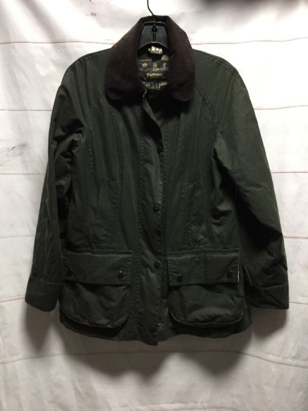 OIL TREATED WATER RESISTANT WAX COTTON ZIPUP JACKET CORDUROY COLLAR & PLAID FLANNEL LINING