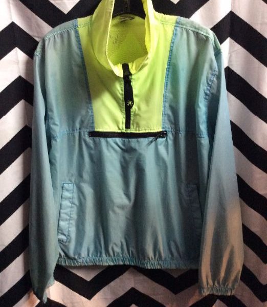 OP windbreaker jacket, half-zip, pullover, neon color block, neon yellow/seafoam green/black, size M as is