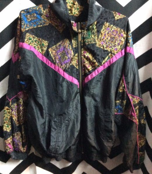 1980S-90S PATCHWORK PRINT WINDBREAKER AS-IS