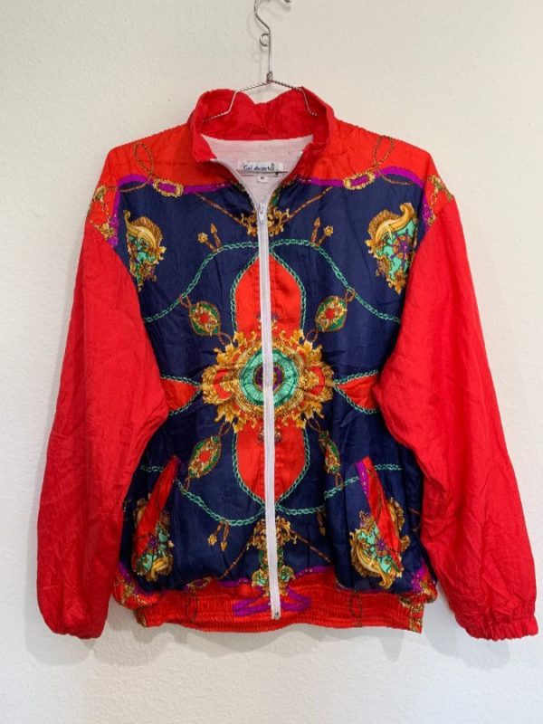 Sail Away windbreaker jacket, zip-up, ornate Baroque print, red/blue/navy blue/orange/green/purple, size XL