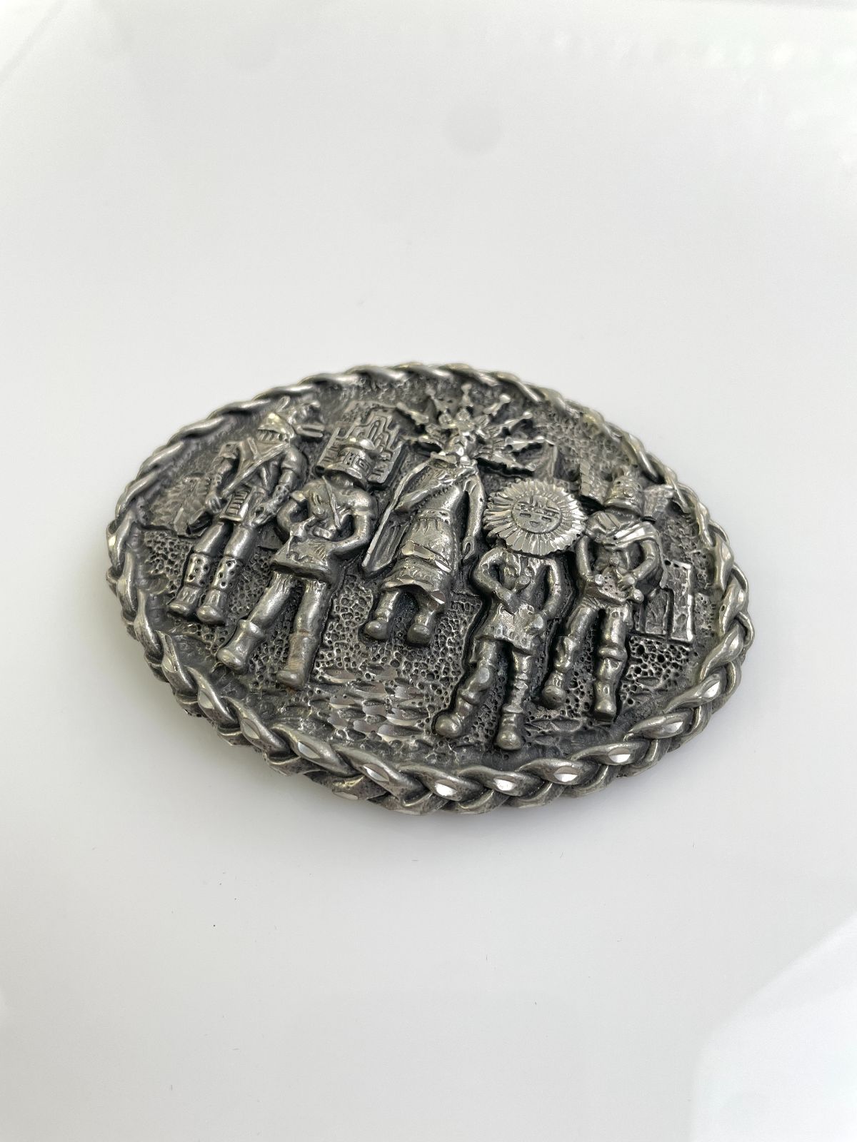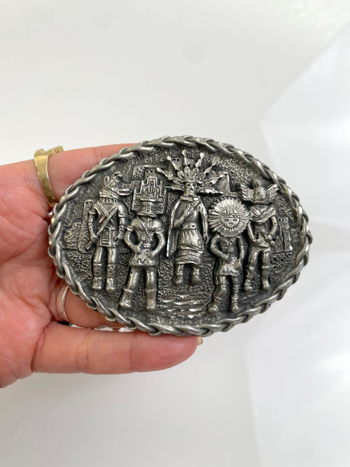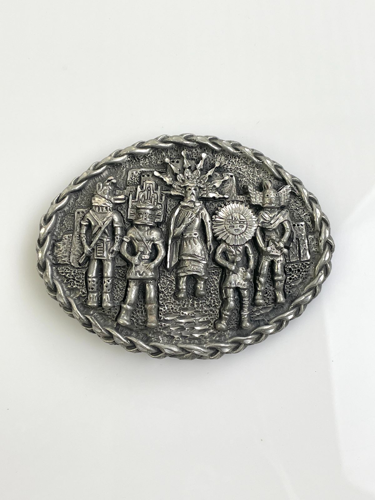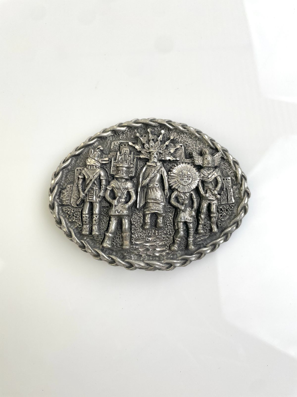 ORNATELY CARVED NATIVE AMERICAN TRIBE BELT BUCKLE, KACHINA, SUNFACE