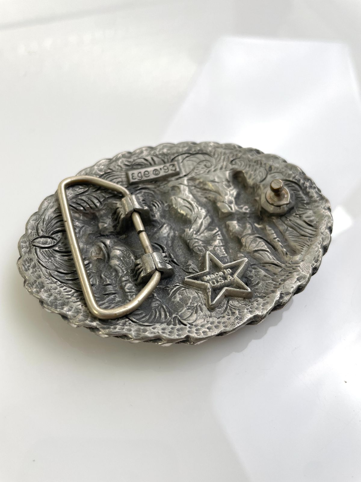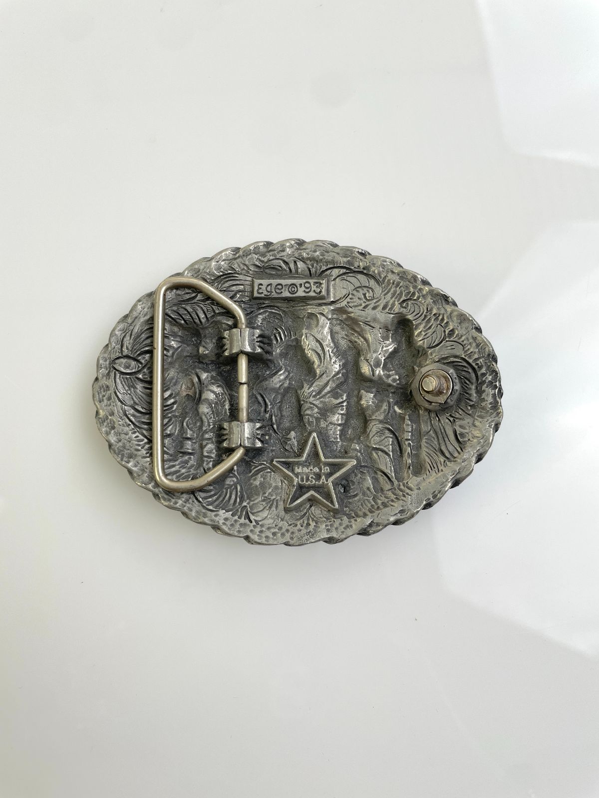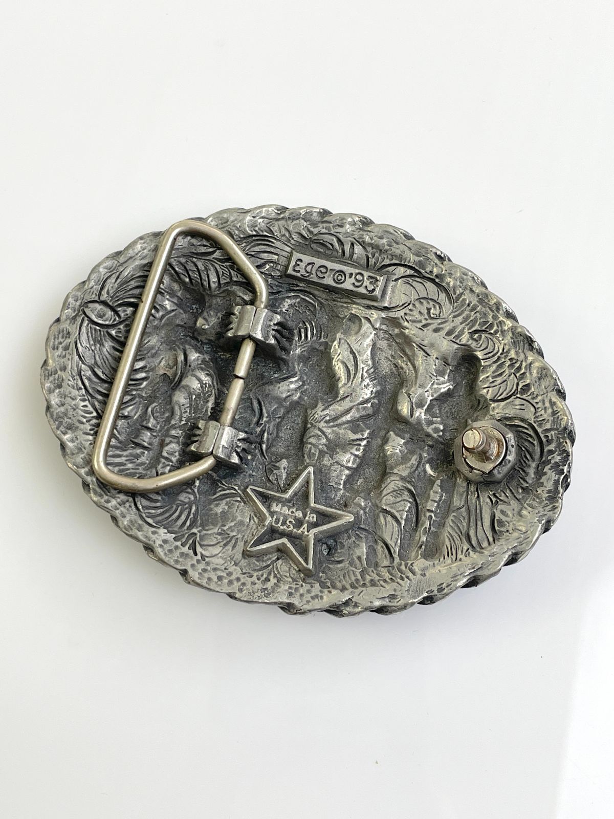 2-TONE ORNATE DESIGN GALLOPING HORSE BELT BUCKLE