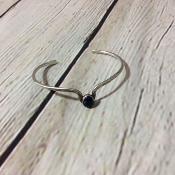 OVAL ONYX STONE INLAY & STERLING SILVER BRACELET