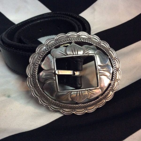 BELT – LEATHER – OVAL SILVER BUCKLE – LOTUS DESIGN