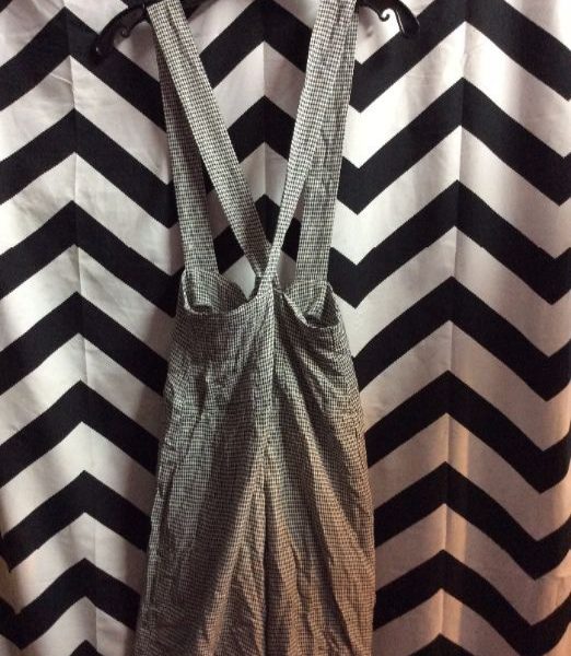 Overall/romper, shorts, pearl buttons, plaid print, black/white, size 5/6 oversized