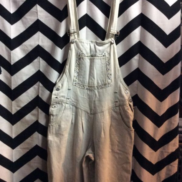 OVERALLS – DENIM – BLEACH WASHED – FAUX DIAMOND BUTTONS