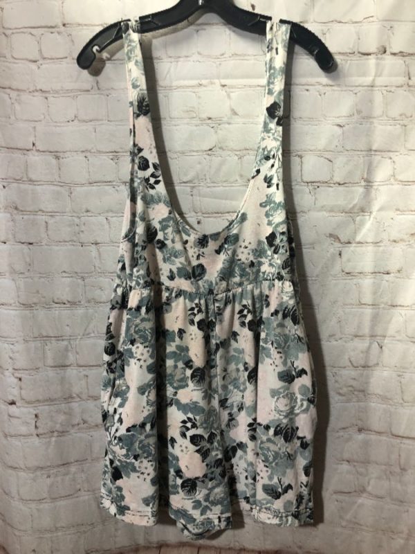 Sheryl Burnett romper style mini dress, tank style top, cotton, floral print, off-white/light gray/dark gray, size S
