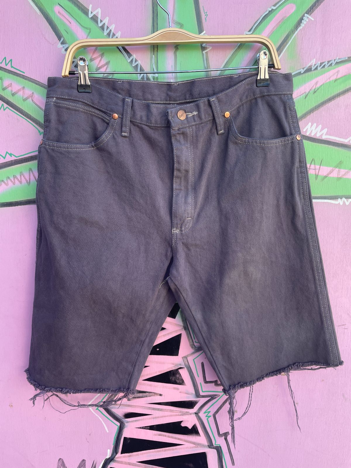 OVERDYED DISTRESSED DENIM CUTOFF SHORTS