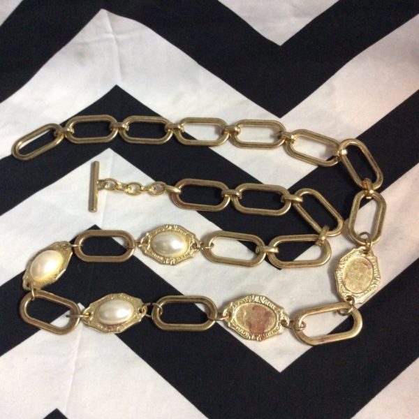 BELT – GOLD CHAIN – FAUX PEARL ACCENTS
