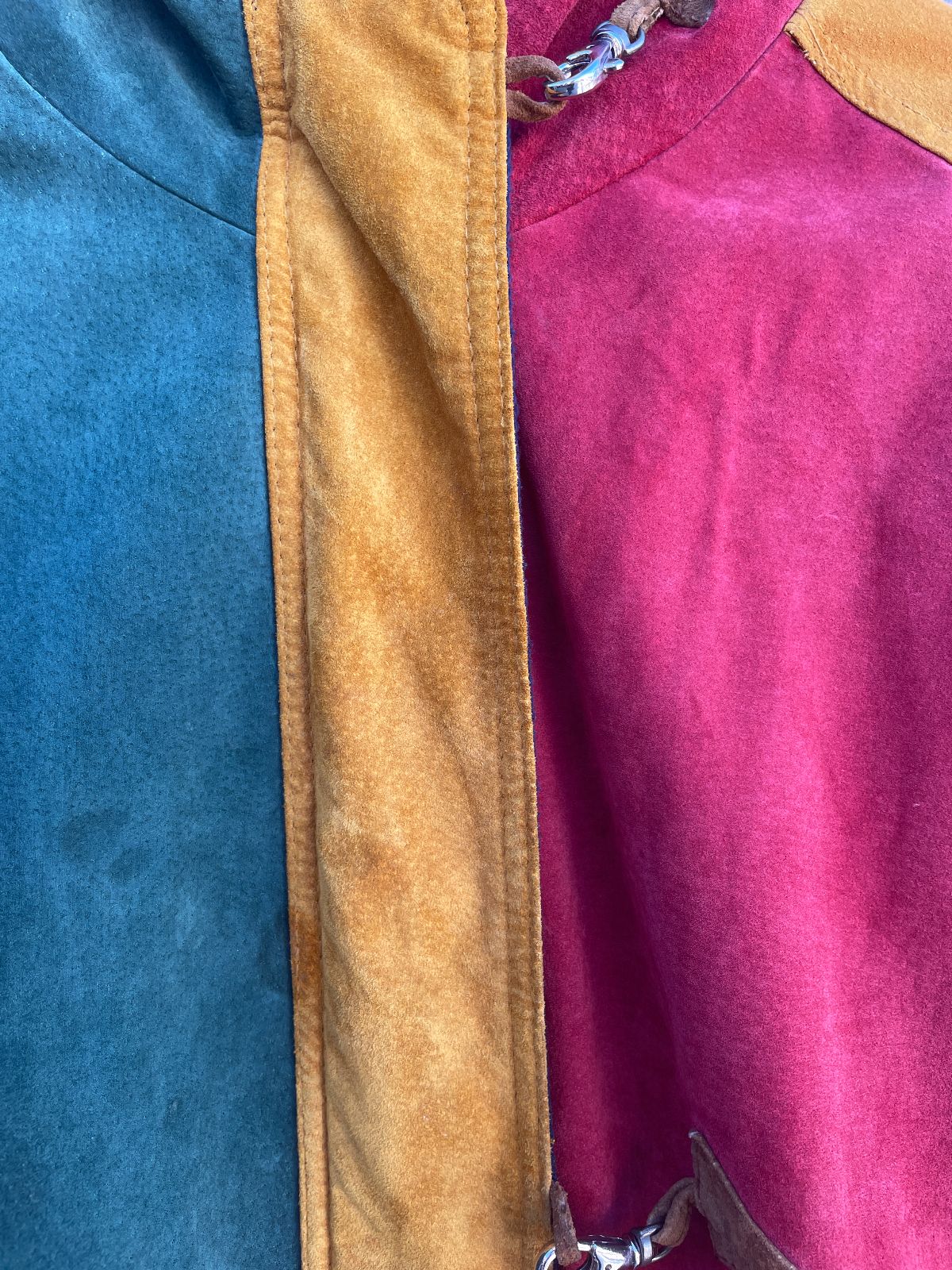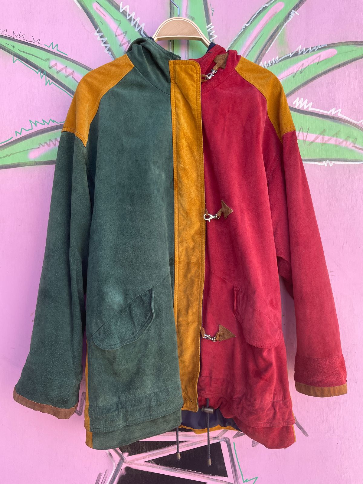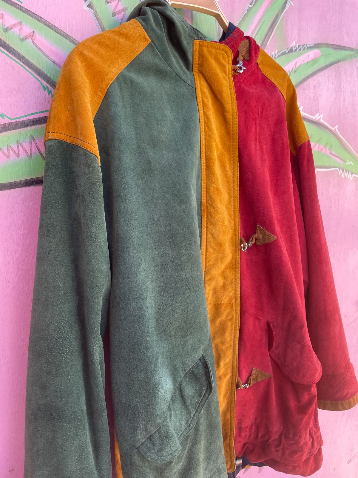 HOODED CUSTOM PATCHWORK CANYON DESIGN SUEDE JACKET