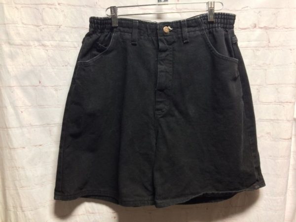 Lee Originals denim shorts, Dad’s style, finished hem, zip-up fly, partial elastic waistband on sides, black, size 32W oversized