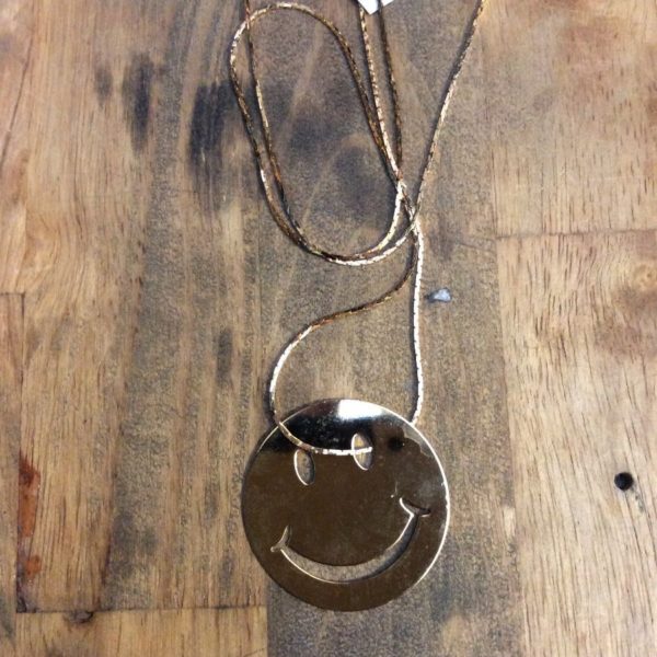 SMILEY FACE NECKLACE W/ MINI SNAKE CHAIN