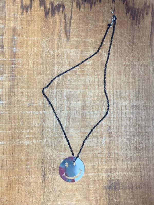 SMILEY FACE PENDANT W/ SMALL MATTE CHAIN LINK NECKLACE