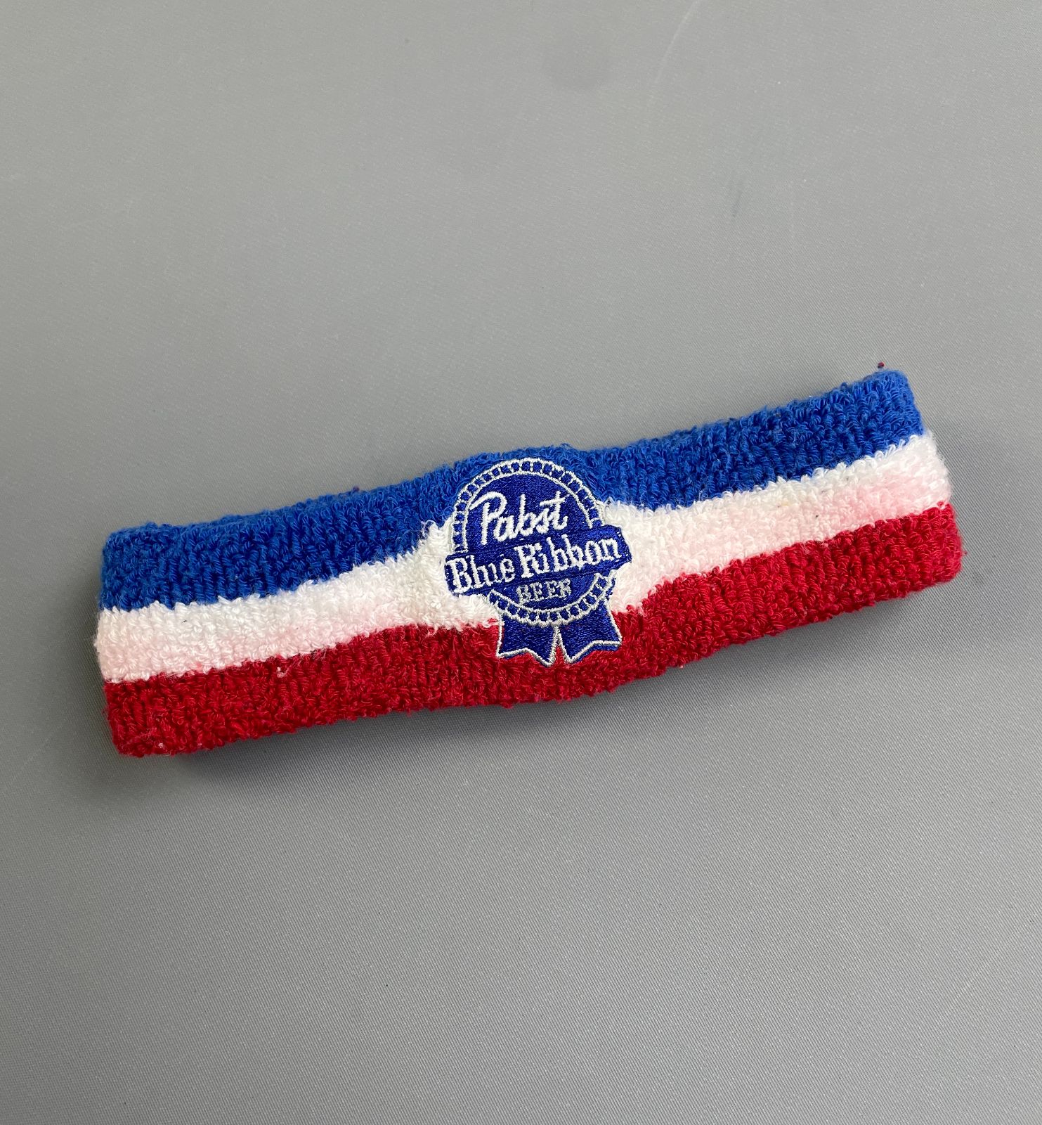 *AS-IS* PABST BLUE RIBBON EMBROIDERED STRIPED TERRY CLOTH HEADBAND