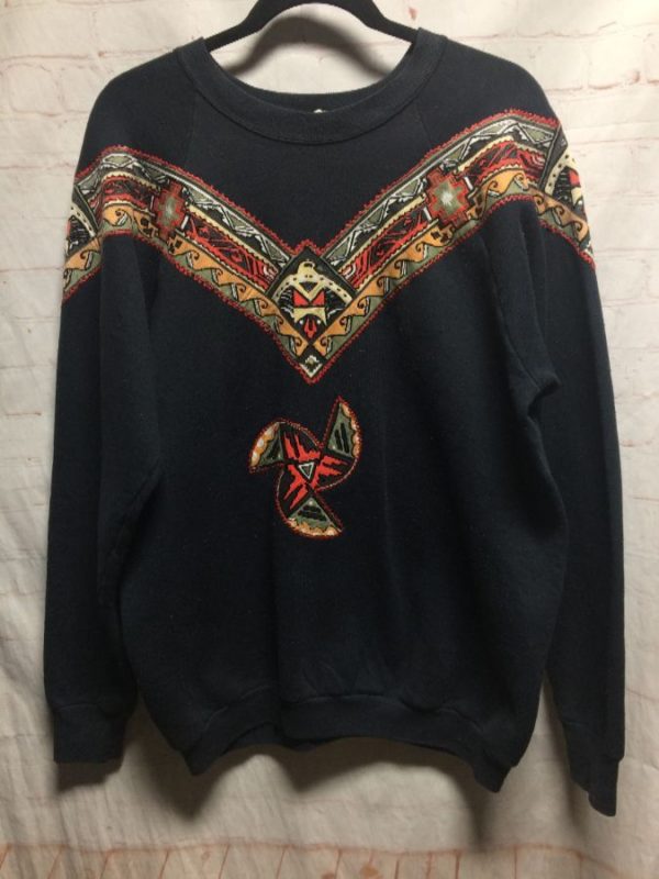 PAINTED AZTEC DESIGN CREWNECK SWEATSHIRT THUNDERBIRD APPLIQUE