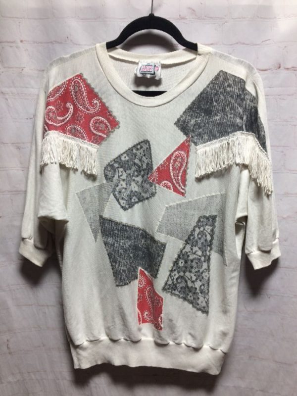 PAISLEY PRINT SHIRT WESTERN DESIGN W/ HANGING TASSEL