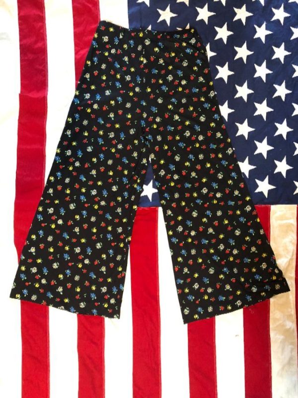 Pants, Palazzo style, floral print design, multi-color, black/red/blue/yellow/white/green, size S