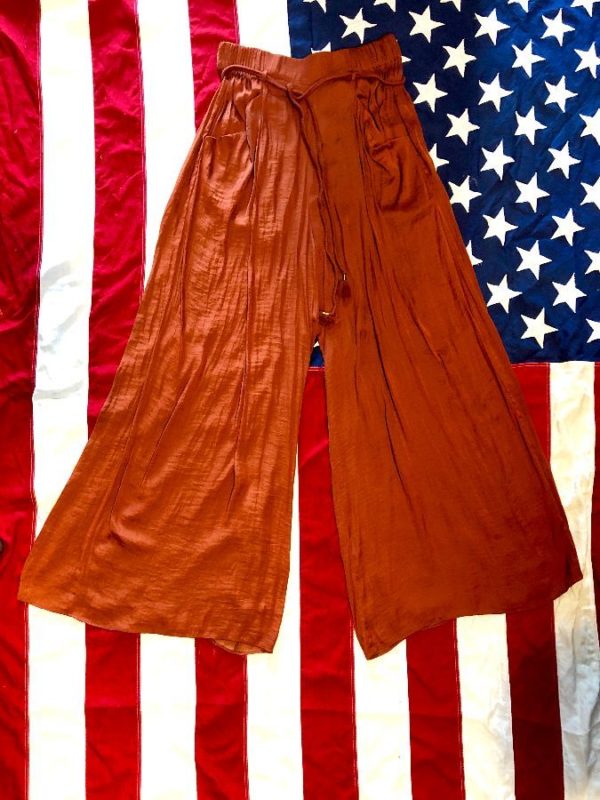 Zara pants, palazzo style, drawstring with fringe on ends, front pockets, orange, size M